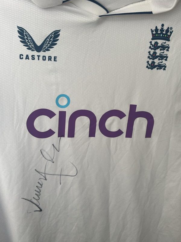 Jimmy Anderson signed cricket shirt. Sir James "Jimmy" Anderson is a legendary former England international cricketer and is widely regarded as one of the greatest swing bowlers in the sport's history. He retired from international cricket in July 2024 as the most successful fast bowler in Test history with 704 wickets in 188 matches.